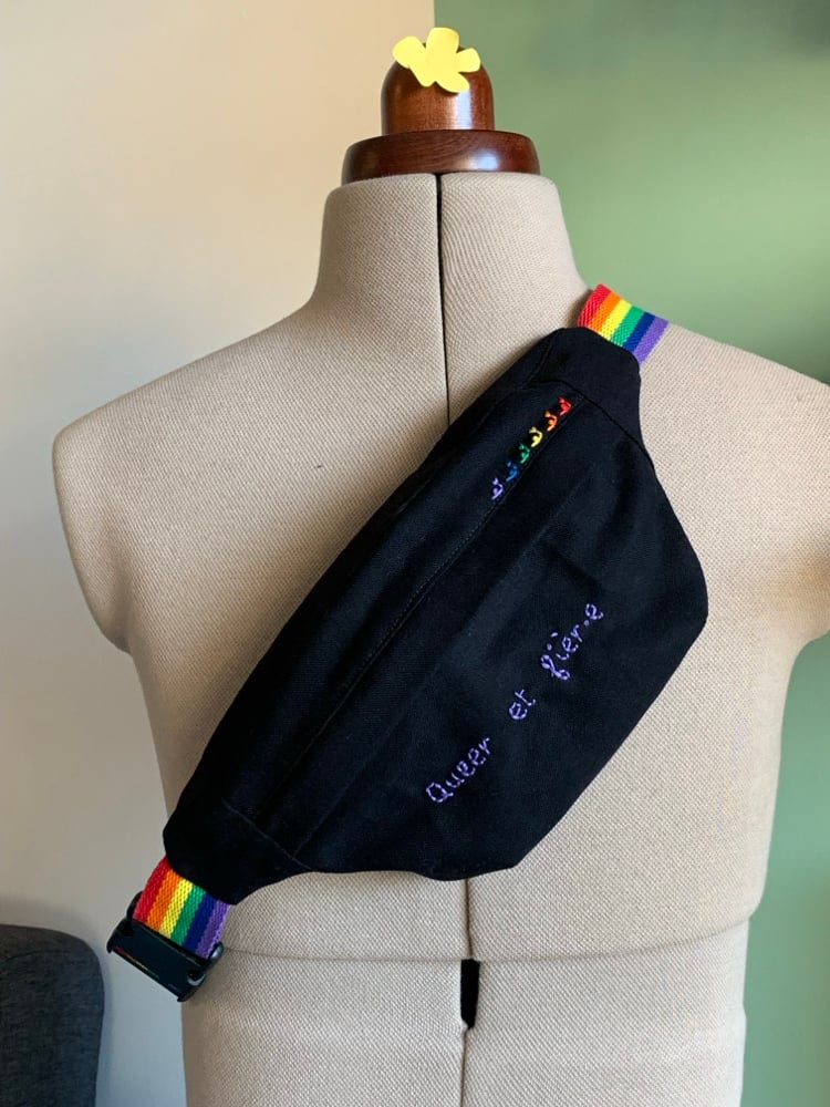 Banane brodée à la main "Queer et fièr.e".