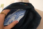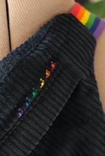 La sangle est arc-en-ciel, et des escargots brodés se baladent en file indienne (c’est mon petit signe distinctif, brodé sur chacunes de mes créations).